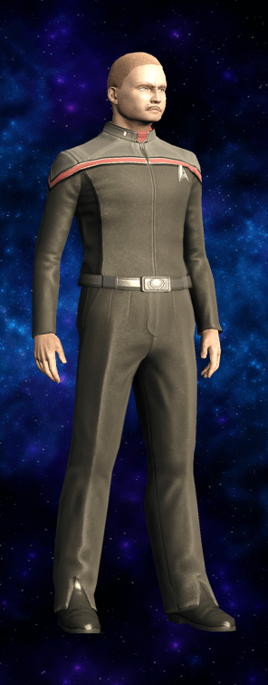 Kozslym Jidi was a Bajoran farmer most of his life. Shortly after Bajor joined the Federation, Kozslym joined up, and attended Starfleet Academy. As one of Bajor’s latest graduates, Kozslym was transferred to the U.S.S. Lachesis.